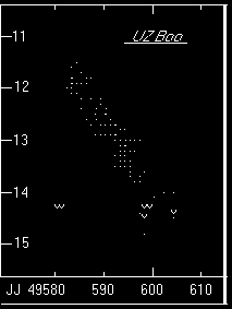 The table give indications relative to the eruptions of UZ Boo. The 4 columns respectively give :