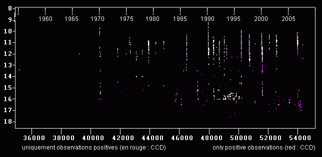 12797 observations entre les JJ 35008 et 54357 - 23 éruptions observées