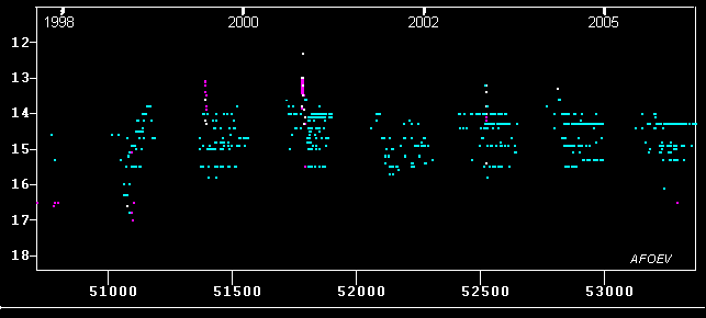 The table give indications relative to the eruptions of UV Per. The 8 columns respectively give :