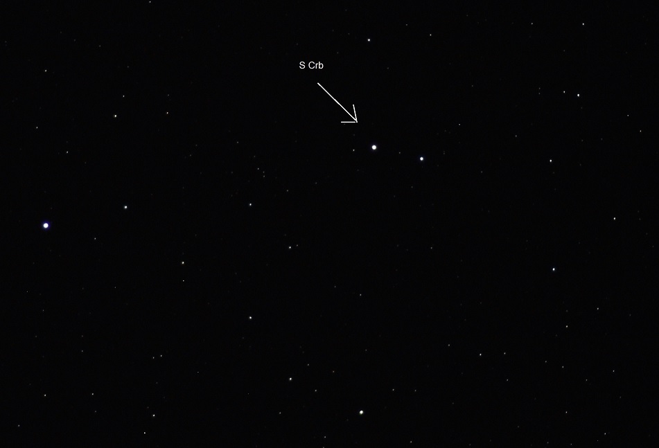 S CrB le 9 juillet 2022 photographiée par Jean-Pierre Sciolla (téléobjectif de 180 mm à f/2,8, 1 min sur 200 ISO), magnitude 5,4: