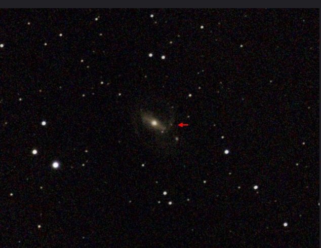 Image de Laurent Vadrot faite avec une lunette Vaonis Vespera le 22/10/2023 à 2h14 TU, magnitude mesurée à 14,9. Ce petit instrument a permis de photographier depuis le centre de la France une galaxie située à la déclinaison -30 degrés !
